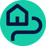Icon with a car parked on a driveway infront of a small house with a tarmac pathway to show how tarmac driveways increase property value